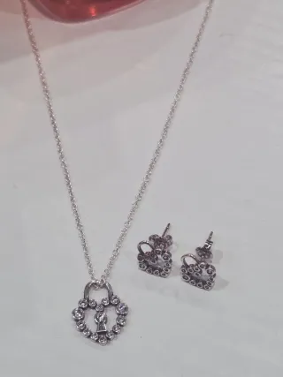 Precioso conjunto de collar y pendientes de la marca Pandora candado corazón. - Diseño delicado con circonitas. - Acabado en plata 925 - Cierre de mosquetón en el collar.