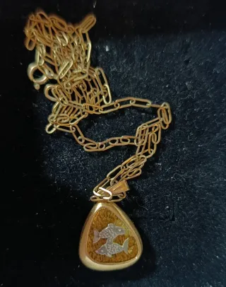 TESORO VINTAGE ÚNICO Espectacular conjunto original de los años 70. Un diseño que combina materiales nobles y estética retro auténtica. DETALLES DEL SET: *LA CADENA: Auténtica PLATA con baño de oro. Eslabón alargado tipo Paperclip (tendencia absoluta). *EL COLGANTE: Medallón de Piscis en relieve. Pieza vintage de colección (núcleo de acero, muy resistente y con peso). *ESTADO: Dorado vibrante y cierre de seguridad perfecto. *VIBRAS: Mid-Century, Astrología, Boho-Luxe. Una joya con historia, ideal para amantes del zodiaco o para un regalo exclusivo.