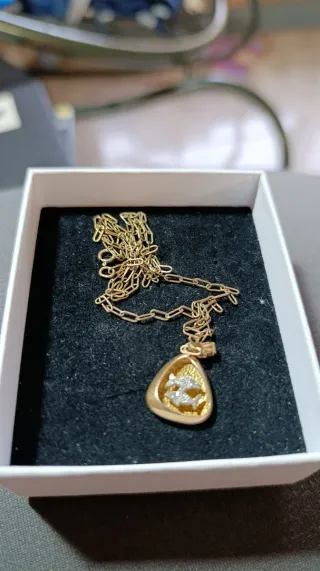 Elegante conjunto de collar y pendientes. - Diseño circular con patrón de rombos. - Cadena fina y delicada. - Cierre de mosquetón. - el conjunto lo pague 59€ y es my bonito y de muy buena calidad
