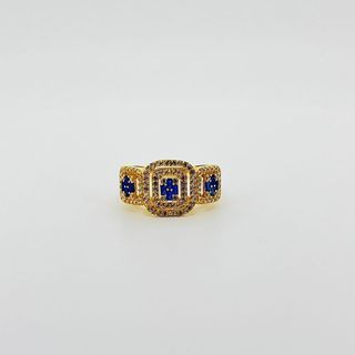 SORTIJA TRESILLO CON CIRCONITAS Y BAGUETES AZUL