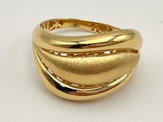 El precio mostrado es el de venta en nuestra tienda. El precio de este producto en nuestra página web puede ser diferente. Este artículo está disponible en nuestra tienda de Elche. sortija oro 18k CC043_E673548_41 es un objeto que se ofrece en estado excelente. Todos nuestros productos cuentan con garantía de 3 años y un plazo de devolución de 14 días. Gramos: 3.08 | Tipo de oro en kilates: Oro primera ley (oro 18k) | Talla: 20 | Contraste: Si | Tipo de piedra: Sin piedra | Genero-tipo: Mujer | Peso piedras: 0 | Piedras: 0 | Detalles joya: Sortija ondulada. Precio NO negociable.