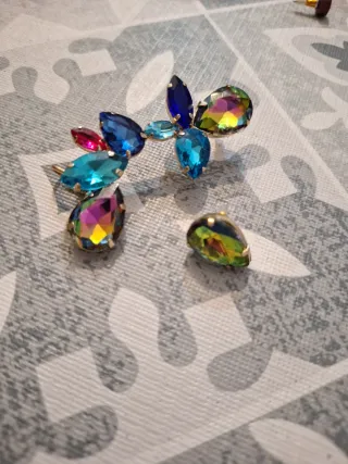 Pendientes con un diseño de mariposa adornados con piedras brillantes. - Diseño de mariposa. - Piedras en tonos azules y multicolor.