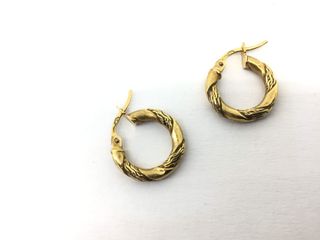 El precio mostrado es el de venta en nuestra tienda. El precio de este producto en nuestra página web puede ser diferente. Este artículo está disponible en nuestra tienda de Logroño. pendientes oro 18k CC062_E588909_0 es un objeto que se ofrece en estado muy bueno. Todos nuestros productos cuentan con garantía de 3 años y un plazo de devolución de 14 días. Tipo de oro en kilates: Oro primera ley (oro 18k) | Gramos: 3.48 | Marca: Sin marca | Modelo: Sin modelo | Detalles joya: Pareja de pendientes | Piedras: 0 | Peso piedras: 0 | Informacion adicional: Buen estado | Genero-tipo: Unisex | Tipo de piedra: Sin piedra | Piedra: N