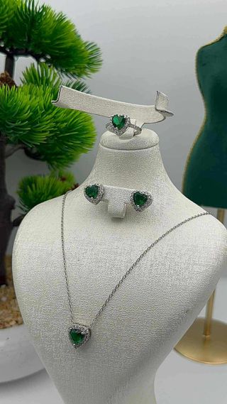 Elegante conjunto de joyas con diseño de corazón. Incluye collar, pendientes y anillo. Ideal para regalo o uso diario. Envío por Wallapop o entrega en mano en Pamplona