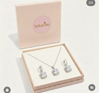 Elegante set de collar y pendientes, hechos en acero inoxidable de alta calidad y circonitas, diseño minimalista llévalos tanto para el día a día como para ocasiones especiales. Largo de los pendientes 2cm aprox. Largo cadena 45+5 cm ajustable . Resistentes al agua.