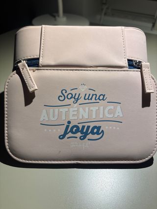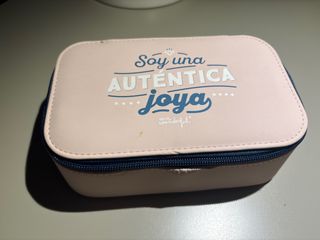 Elegante joyero de Mr. Wonderful con un diseño moderno y práctico. - Acabado exterior en color rosa. - Cremallera y detalles interiores en color azul. - Interior forrado para proteger tus joyas. - con espejo interior grabado Esta como nuevo