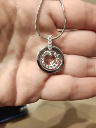 Elegante conjunto de pendientes y colgante de la marca Swarovski. El diseño presenta círculos entrelazados con un acabado plateado brillante. En caja de la marca y sin estrenar. - Pendientes a juego. - Colgante con cadena. - Detalles brillantes.