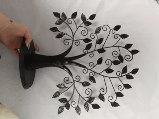 Este árbol decorativo de metal le dará un toque elegante a tu hogar. - Diseño intrincado con hojas y espirales. - Base estable para colocar en cualquier superficie. - Ideal para colgar joyas o como pieza de arte. - Perfecto para colgar mini cuadros con fotos