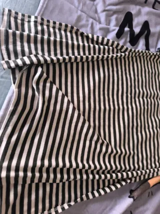 Falda larga con estampado de rayas horizontales en blanco y negro. Es una prenda versátil y cómoda. - Diseño de rayas. - Largo hasta los tobillos.