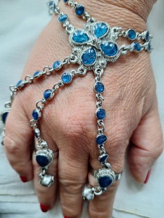 Joya de mano azul y plateado