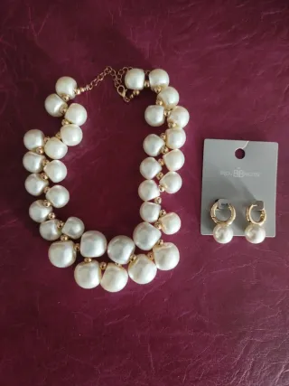 precioso conjunto de collar y pendientes con perlas incrustadas