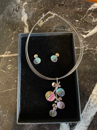 Set de collar y pendientes de la marca australiana Aukos Design, comprado en Australia. Joyas artesanas fabricadas en acero y esmalte. ¡Nuevos a estrenar!
