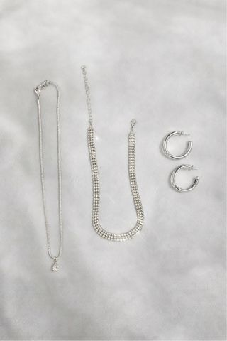 Conjunto de joyas plateadas.