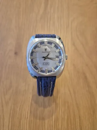 Un accesorio clásico y funcional. Festina automático de los años 70. Movimiento automático suizo con gran reserva de 45 horas ETA 2782. Impoluto! Rara esfera plateada con detalles en relieve, impoluta. Caja de 38mm sin corona x 41mm y correa original con hebilla de la época. - Correa de piel azul con pespuntes blancos. - Mecanismo automático. - 25 rubíes. - Sistema Incabloc. •Fotos echas desde mi mano •Envío 24 horas •Seriedad •Entrega en mano en Sevilla NO LEER: #reloj #orologio #montre #klok #man #hombre #homem #caballero #uomo #orologi #swiss #swissmade #admiral #conquest #hydroconquest #longiness #omega #swatch #tissot