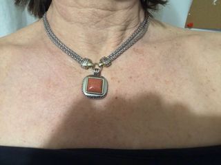 Conjunto vintage de collar y pendientes. - Diseño elegante con detalles en color plateado y dorado. - Colgante con piedra central de color naranja brillante. - No sé que material, pero se ve bastante bueno. (Oro,plata,joyas,vintage,lote,bisutería,barato,antiguo,antiguedades,collares,pendientes,pulsera)