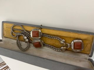 Conjunto de joyería vintage plata y ónix cabochon