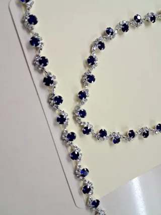 Elegante conjunto de bisutería con piedras azules y detalles plateados. - Diseño de collar con forma ondulada. - Pendientes a juego con caída. - Ideal para ocasiones especiales.