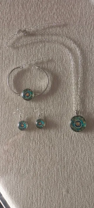 Collar, pulsera y pendientes con colgante mandala