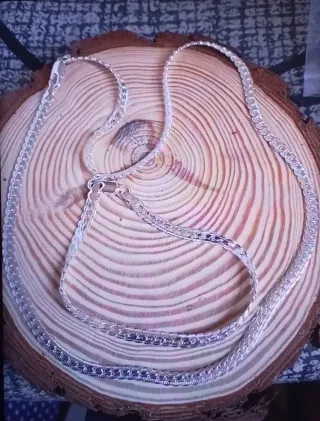 Elegante conjunto de collar y pulsera. - Fabricado en plata 925. - Diseño de eslabones finos y brillantes.