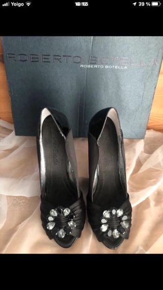 Elegantes sandalias de Roberto Botella con un detalle de joya en la punta. PRECIO 75€ Ahora 18€ - Diseño abierto. - Adorno de pedrería. - Tacón alto.