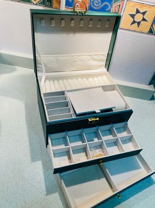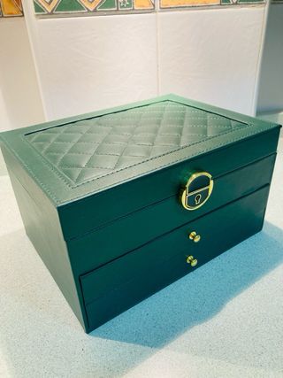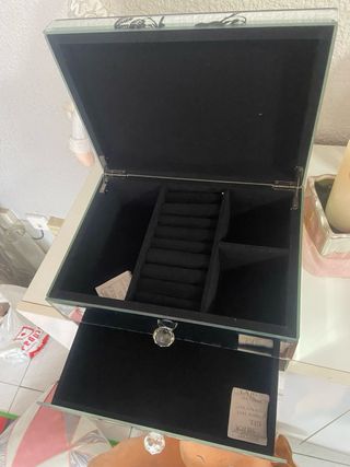 Elegante joyero con acabado brillante. - Compartimentos interiores para organizar tus accesorios. - Tapa con cristal para visualizar el contenido. - Cierre dorado. tengo varias unidades