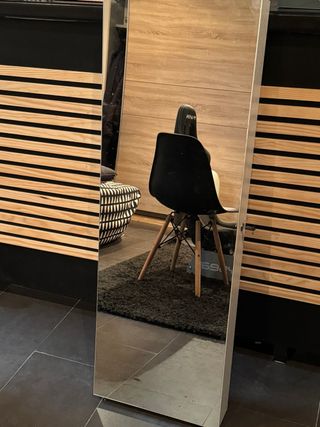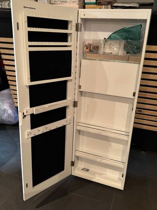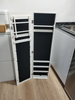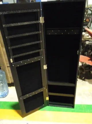 Joyero con espejo de pared, ideal para organizar tus accesorios. medidas: 108 cms alto 37 cms ancho 10 cms de profundidad - Diseño elegante. - Acabado en madera. Muy bien conservado.