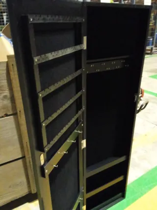 Este joyero con espejo es un accesorio elegante y funcional para organizar tus joyas. - Diseño vertical con puerta abatible. - Interior forrado para proteger tus accesorios. - Múltiples compartimentos y ganchos para collares y pendientes. 100x 30 x10cm