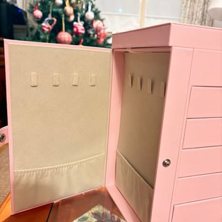 Elegante joyero de color rosa con múltiples cajones para organizar tus accesorios. - Diseño con cierre plateado. - Acabado en piel sintética. - Completamente nuevo -No envío