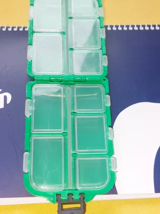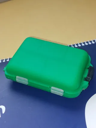 Práctico pastillero o joyero para llevar tus pertenencias de forma organizada. - Diseño compacto y ligero. - Cierre seguro para evitar aperturas accidentales. - Ideal para viajes o uso diario.