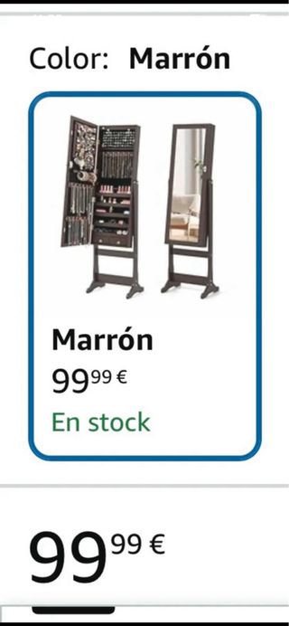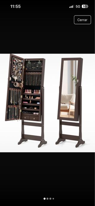 Mueble organizador de joyas con espejo. - Diseño vertical con espejo. - Compartimentos interiores para organizar accesorios. - Acabado en tono marrón.