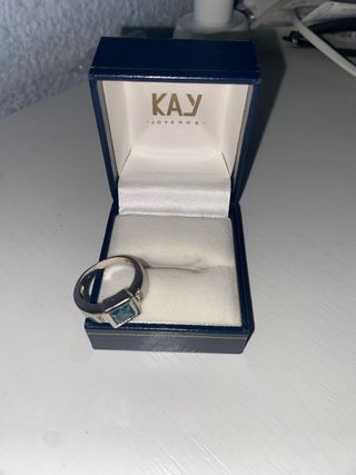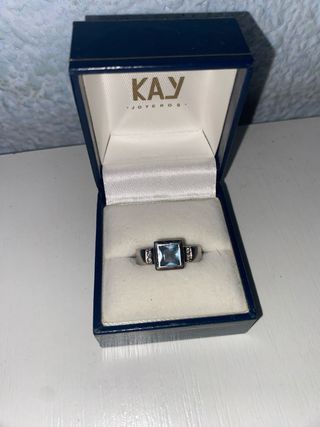 Elegante anillo de Kay Joyeros con un diseño llamativo. - Piedra central de color azul. - Detalles plateados en el aro.
