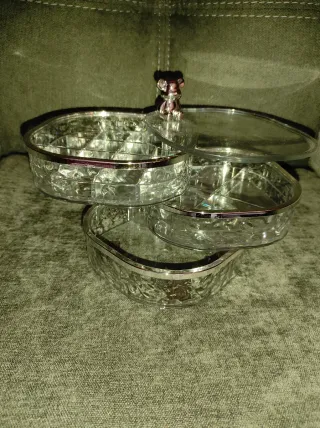 Elegante joyero con acabado de espejo y un delicado diseño floral. - Superficie reflectante. - Detalle de rosas y enredaderas. - Dos cajones con tiradores de cristal. tengo varias unidades.