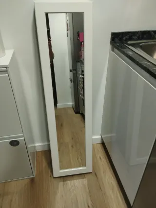 Espejo de cuerpo entero con marco blanco. - Diseño alargado y estilizado. - Ideal para colocar en cualquier estancia.