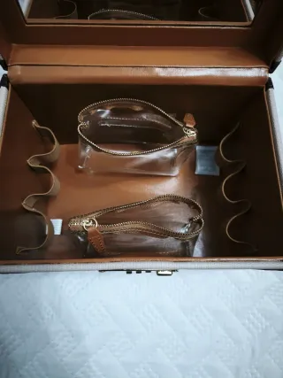 Elegante joyero de viaje, perfecto para organizar tus accesorios. - Material exterior ante auténtico. - Interiores en terciopelo beige. - Sin estrenar y con su llave - Diseño compacto y práctico. - Cómodo y elegante. - Bonito regalo para madres. - No pesa nada. - No envío. Entrego en Albacete.