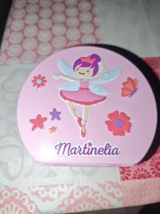 Este mini joyero de Martinelia tiene un diseño encantador con una bailarina. - Forma redonda. - Decorado con una bailarina, mariposa y flores. - Incluye el nombre Martinelia en la parte frontal.