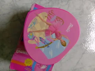 Precioso joyero con forma de corazón de la marca Barbie. Presenta un diseño encantador con una bailarina y detalles musicales. - Diseño en forma de corazón. - Incluye una figura de bailarina. - Decorado con motivos florales y mariposas.