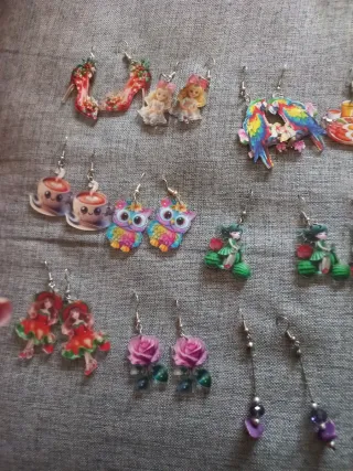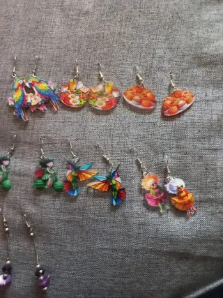 Conjunto de pendientes con diseños de muñecas bailarinas y un joyero. - Pendientes con figuras de bailarinas. - Diseño colorido y detallado. - Incluye un joyero para guardar accesorios.