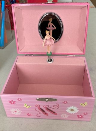 Precioso cofre joyero musical con un diseño encantador. - Ilustración de una bailarina. - Tapa con acabado brillante. - Ideal para guardar pequeñas joyas.