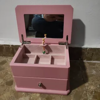 Precioso joyero musical con un diseño encantador. - Figura de bailarina. - Compartimentos para organizar joyas. - Espejo interior. - Decoración floral en la base.