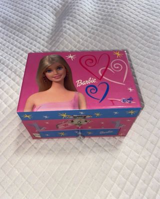 Precioso joyero con diseño de Barbie bailarina. - Forma de corazón. - Detalles en tonos rosas y azules. - Incluye espejo. - Ideal para guardar pequeños tesoros.