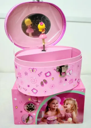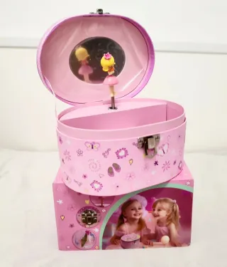 Preciosa caja de música infantil con una figura de bailarina. - Diseño con espejo. - Compartimentos interiores para organizar joyas. - Mecanismo musical.
