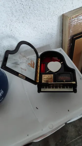 Joyero musical con forma de piano, de baquelita de Ostride, de Pianissimo. Piú mosso. Precioso joyero musical made in Japón con la melodía implementada de "fur Elise" de Beethoven. El joyero data de los años 1970. La melodía suena un poco rápida. La bailarina no formaba parte de la caja pero se regala igualmente. El estado impecable, según fotografías. Medidas altura 9 cms, ancho 11 cms. largo 13 cms. Sí se hacen envíos.