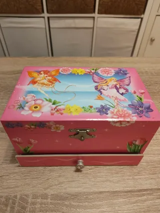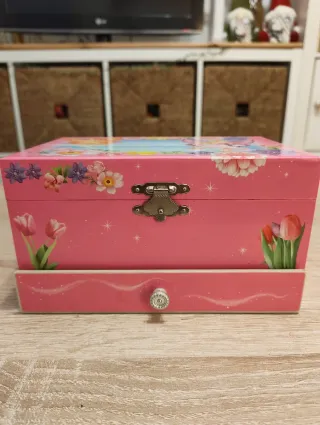 Joyero infanti. Con una bailarina dentro que se mueve cuando se abre la tapa y suena música. Funciona perfectamente.