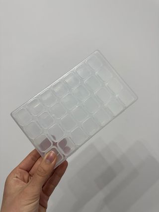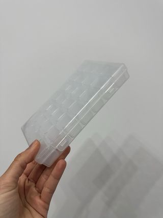 Caja de almacenaje para joyería o bisutería, para pintura, para decoraciones para uñas o abalorios. También apto para adornos para resina epoxi. Es transparente, tiene 7 filas individuales de 4 compartimentos cada una. Cada compartimento tiene cierre propio, y luego cierre doble de la caja grande. Perfecto para pendientes pequeños, anillos, collares o pulseras. Medidas aprox.: 11 x 17 cm Nueva, sin estrenar