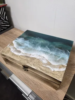 Joyero de 28x30 cm, totalmente artesanal de.resina epoxi sobre madera tratada. Nuevo sin utilizar.
