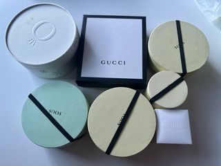 Cajas de Pandora, Tous y Gucci. Tambien hay una bolsilla de Tous. Dependiendo del tamaño y marca el precio es diferente.