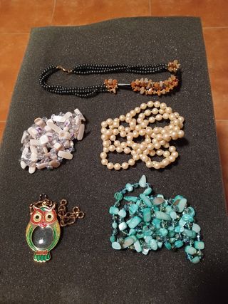 Pequeño joyero + Collares de bisutería (5 modelos) . Precio por el lote completo.