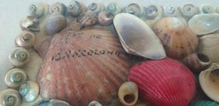 Bonito joyero decorado con conchas marinas y pequeños caracoles, recuerdo de Barcelona. Incluye collares y purpurina. Medidas: 18 x 11 x 9 cm Espacio interior: 14,9 x 8,1 x 5,7 cm Peso: 695 gr Diseño artesanal con variedad de conchas. Ideal para guardar bisutería o pequeños objetos. En perfecto estado, salvo una de las dos bisagras, que se puede arreglar.