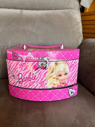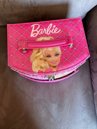 Vendo joyero / maletín original de Barbie, muy bonito y decorativo, en buen estado. • Diseño rosa Barbie con detalles brillantes • Asa para transportar • Cierre metálico • Ideal para guardar joyas, accesorios, coleccionables o muñecas pequeñas 📦 Se vende tal como se ve en las fotos. 🎁 Perfecto para niñas o fans de Barbie. 💶 Precio:15€ 📦 Envío por Wallapop o entrega en mano.