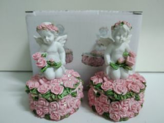 2 joyeros ángeles querubines en corazón con rosas